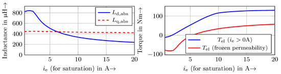 Ref. [23] shows that this also has a positive effect on the operation below field weakening. Due to the saturation, the negative d-axis current desaturates the main inductance Lmd,abs. It leads to an increase in interaction torque.