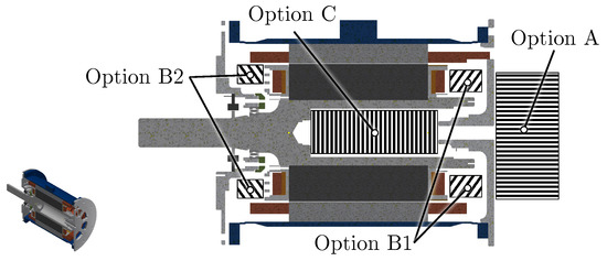 - Illiano, E.M. Design of a Highly Efficient Brushless Current Excited Synchronous Motor for Automotive Purposes. Ph.D. Thesis, ETH Zurich, Zurich, Switzerland, 2014. [Google Scholar] [CrossRef]