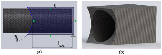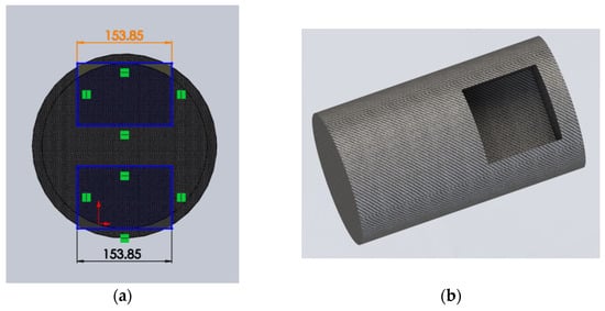 The shaft was created by drawing a circle with a diameter of 30 mm in the top plane and extruding it by 60 mm to create the cylindrical shape. To create the sockets for the super-magnets, a plane was created at a 34 mm distance from the original top plane, and a square of 10 mm was drawn. The top line of the square coincided with the top point of the circle to ensure that it enclosed the entire circular circumference of the shaft, shown in Figure 4.