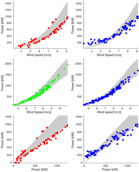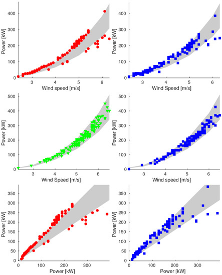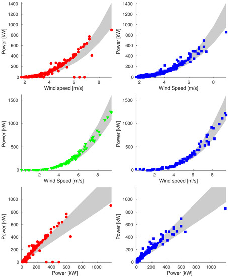 - For wind speed values below the cut–in speed , we consider consistent only the data with generated power null, so the band is exactly the power curve;