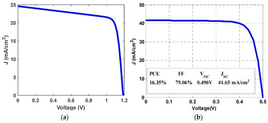 Table 1 presents the parameters employed in the mentioned equations as well as their definitions. All simulations are performed by the SCAPS-1D device simulator [] which is widely used in simulating single-junction and tandem solar cells. A variety of photoactive absorbers have been implemented employing this software package. In addition, numerous studies have been performed and validated against practical work [,,,].