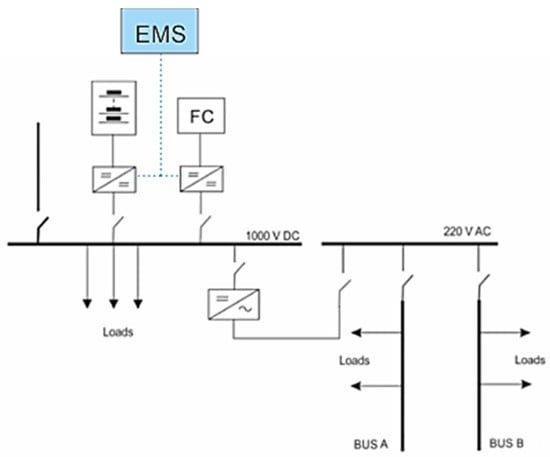 In the evolution toward more efficient and sustainable SPSs onboard cruise ships, the shipbuilding industry is currently evaluating the realization of modular shipboard MGs to supply hotel loads. These MGs are designed to be self-sufficient systems from an electrical standpoint, being isolated from each other and from the main diesel-electric generators. FCs associated with BESSs are imagined as the only power sources of such local MGs, where electrical power is distributed by hybrid DC/AC distribution systems [11]. Apart from robust voltage regulations, each islanded MG needs automatic systems that manage the possible operating conditions, i.e., black start, normal, transient, and fault conditions. It should also be considered that an FC is a slow and sensitive device. In fact, if the FC is subject to significant current variations in the absence of an EMS, its life span is substantially shortened.