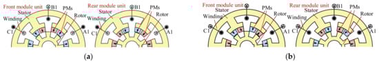 Axial modular structures of AM-FRPM machines. (a) AMA-FRPM topology. (b) AMC-FRPM topology.