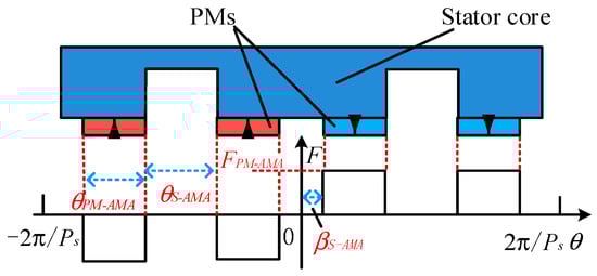 where βs-AMA is the half-slot width between the PMs of the AMA-FRPM machine, and θs-AMA and θPM-AMA are the stator-slot and PM widths, respectively. FPM-AMA is the PM-MMF amplitude.