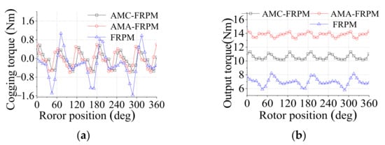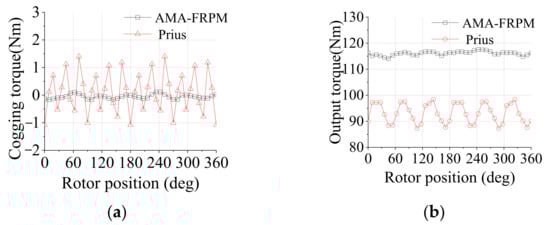 Torque performances of AMA-FRPM and Prius machines. (a) Cogging torque. (b) Output torque.