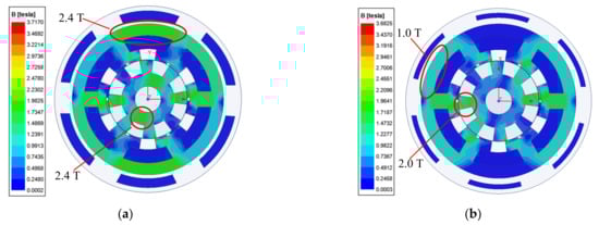 Flux density distributions for AM-FRPM machines. (a) AMA-FRPM. (b) AMC-FRPM.