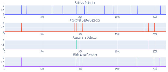The number of points detected depends on the geographic location of the PMUs. For example, Bateias Substation is strategically located in the Paraná network because it is a point of connection with other regions of the state. This fact justifies why its greater reaction to events.