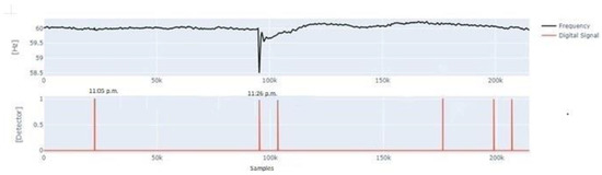 So, the technique detects successfully the first two events and detects the third one precociously. The last three points detected are false detections. If only Step 2 was implemented (identification of measurements outside the operational limits), only the event at 11:26 p.m. will be detected and a smaller window of samples could be stored.