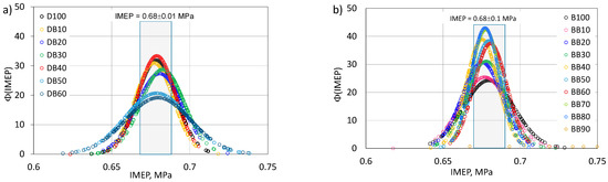 The basic parameter for the assessment of the uniqueness of the engine operation is the COVIMEP index, as the ratio of the standard deviation of IMEP to the average value of 200 cycles [44]. The probability density distribution function was also used to assess the stability of the combustion process [43].