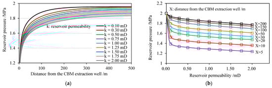 - The permeability sensitivity coefficient of reservoir pressure, Rpk, is defined. Rpk decreases logarithmically as the distance from the CBM extraction well increases. Permeability has a significant effect on the reservoir pressure at different times during CBM extraction, especially near the well. The farther away from the well, the less the reservoir pressure is affected.