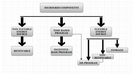 The microgrid elements include the type of loads and the DR, including distributed generation (DG) and energy storage systems (ESS). Frequency and voltage have the main impacts on these elements.