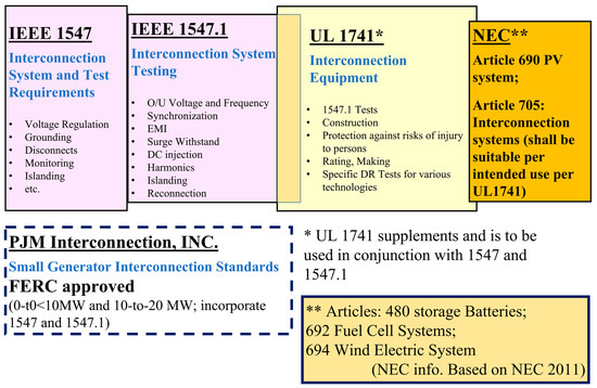 The three main benefits of the standardization of smart grids are: (1) to establish and define the minimum requirements of operating systems in the off-grid operational mode, the interconnection mode, etc., (2) to allow the DR to integrate with the EPS, and (3) to establish smart grid system limits and functionality [11,37,45,46,47,48,51]. It is important that a standard defines the requirements and functions that are applicable to a large range of smart grid applications and their control systems [10].