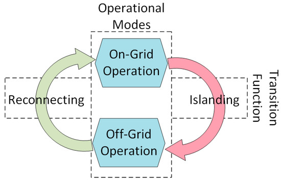 Microgrids need to include electronic devices such as power switches and converters to enable effective control and to manage standby and emergency conditions [7,18,57,58]. Electronic devices may cause several issues in the microgrid, especially when transferring between the on-grid to off-grid modes. Transferring the microgrid to the off-grid operational mode causes a high impedance in the microgrid, resulting in voltage distortion that may affect the power quality [7,18,57,58].