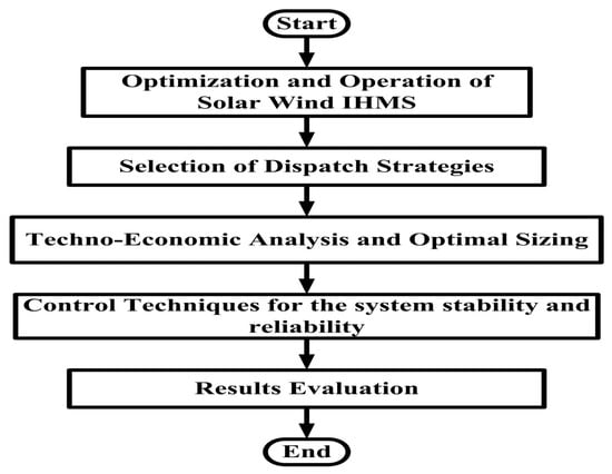 Figure 3 shows the methodological approach of a typical IHMS. In the last decade, the application of different software tools for renewable energy-oriented IHMS and HRES has increased at a huge rate. The popularity of software tools has increased due to the vast industrial applications and complex free conclusions. HOMER is the most efficient and most popular software tool for renewable energy-oriented IHMS and HRES. HOMER gained popularity due to its easy iteration steps and great convergence rates with the highest accuracy. The results generated from HOMER Por have already been recognized and published by many reputed international journals.