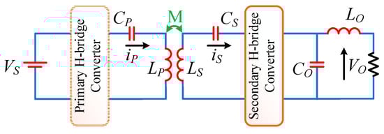 In the current scenario, the energy storage system (ESS) plays an important role during the different trend of power demand as explained in [3]. As intensity of renewable energy (RE) is not constant throughout a day, the ESS plays a crucial role in the area of storage excess energy that can be generated by the RE sources [4], and that can be used to power the various loads such as a household load, industrial load, street load, etc. when we are not able to use the RE sources. The wireless DC–DC converters are becoming more pervasive due to the fact that they are compact in size, isolated power flow between the resonating coils, and have excellent efficiency. In earlier studies, there have been a lot of isolated DC–DC power converters, such as single active bridge (SAB), dual active bridge (DAB), phase shift full bridge (PSFB), and so on for high-frequency applications mentioned in [5,6,7,8].