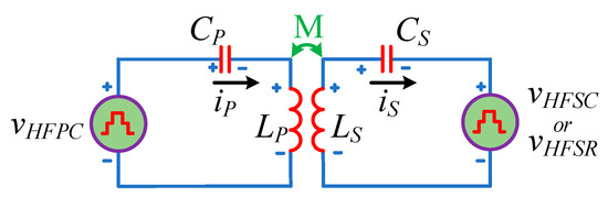 The equivalent circuit of SAHFWPT and DAHFWPT with S-S coupling is shown in Figure 4. As per Figure 3 the operation begins at time t = 0, and the internal phase shift angles of HFPC and HFSC are α and β, respectively (whereas in the case of SAHFWPT, β = π is fixed). The external phase shift angle Φ varying in the range [0 2π] during the operation of DAHFWPT (whereas Φ = 3π/2 is fixed in the case of SAHFWPT). The voltages and are expressed as a Fourier series as follows: