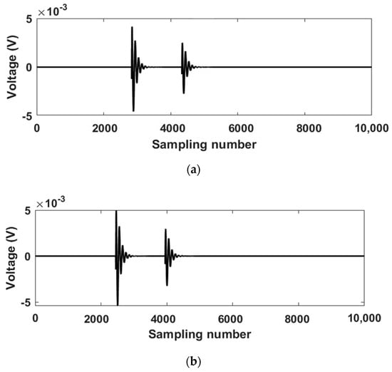 (a) Simulated PD signals measured at PD Sensor A. (b) Simulated PD signals measured at PD Sensor B.