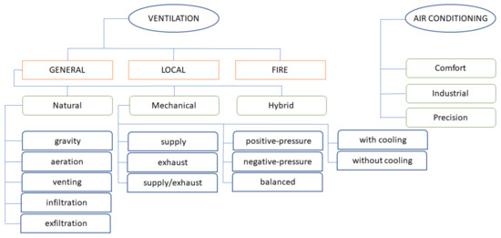 The general division of the systems used to shape the proper parameters of the air in the room is shown in Figure 1 [4].