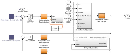 Model of HVAC system with DCV ventilation including fault injector blocks [48].