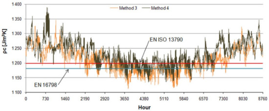 The results of dynamic simulations in the TRNSYS program are presented in the article [26] also confirm the lack of influence of airtightness on energy demand for cooling purposes. The authors simulated a dwelling equipped with a mechanical ventilation system for different locations in Europe (Spain, France, Italy, Germany, UK). In northern and colder locations, the energy impact of infiltration was +13% in energy demand for heating and cooling, in Mediterranean areas from +4 to +7% and in southern locations only +3%. Although the authors highlighted that the passivhaus standard requires the same value of n50 regardless of location, their research shows that it should be differentiated. It should be higher in locations with frequent low temperatures (0.6 h−1) and lower where outside air temperatures are high (even 1–2 h−1).