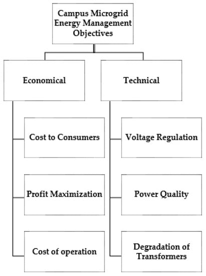 Important objectives of energy management in campus microgrids.