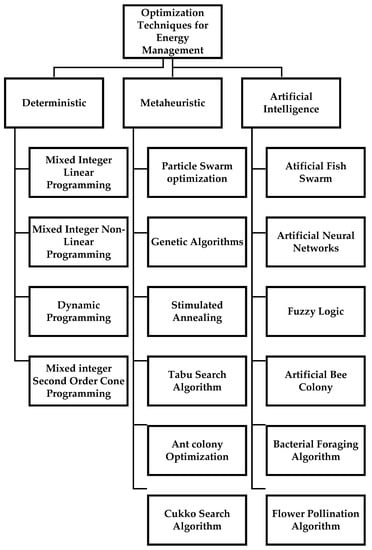 Classification of some important optimization algorithms for energy management.