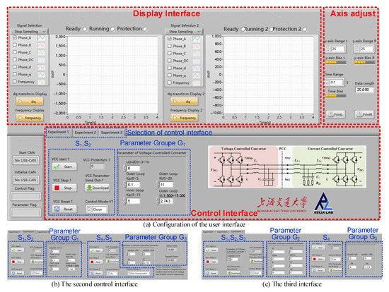 The voltage-controlled converter and current-controlled converter are controlled by two separate digital controllers in the experimental platform. A user interface is designed in the host computer to select the control schemes and change the parameters by communicating with the digital controllers. In addition, various types of voltage and current need to be measured for display. Thereby, the user interface is also required to display the measured voltage and current for easy operation.
