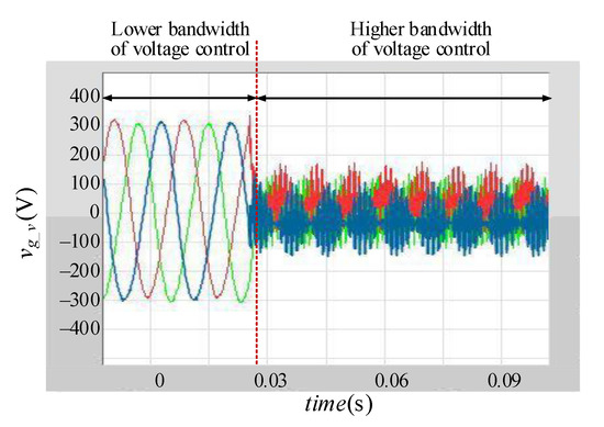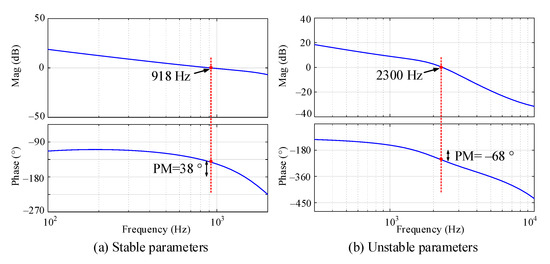 The typical dual-loop voltage control scheme is adopted in the voltage-controlled converter, and the PI controllers are used as the voltage controller and current controller in the typical dual-loop voltage control scheme. The stability of the voltage-controlled converter is affected by the parameters of the voltage controller, and the parameters are shown in