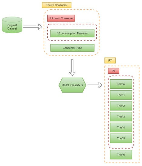 - Zidi, S.; Mihoub, A.; Qaisar, S.M.; Krichen, M.; Al-Haija, Q.A. Theft detection dataset for benchmarking and machine learning based classification in a smart grid environment. J. King Saud-Univ.-Comput. Inf. Sci. 2022; in press. [Google Scholar] [CrossRef]
