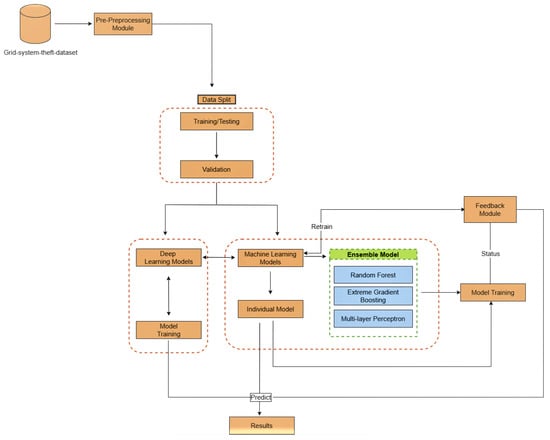According to our knowledge, this is the second study to successfully implement a fully automated identification of theft detection. Machine-learning and deep-learning methods are applied to customer energy-use data to learn and identify anomalous patterns. This study employed a method based on artificial intelligence and proposed a machine-learning-based ensemble model. This paper’s most significant contributions are:
