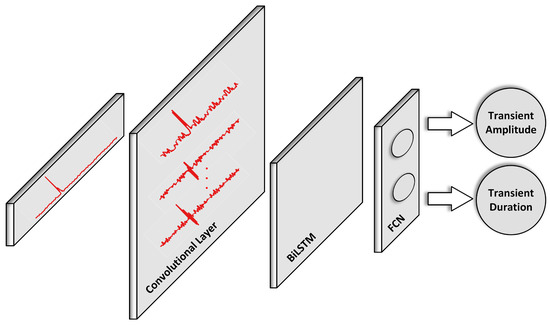 When a transient was detected, the objective of the second step was to extract information that could be used to estimate the transient amplitude and duration. The network used in the second step was a hybrid CNN-BiLSTM, as described in Section 3.2.