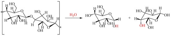 Hydrolysis reaction of cellulose structure.