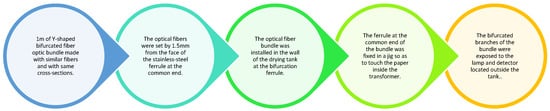 The work carry out by Gupta shows that IR is a promising technique for directly measuring the WCP in an oil–paper-insulated transformer [55]. This study investigates three techniques, i.e., impedance measurement at high frequency, microwave absorption, and infrared absorption, for their suitability for directly measuring the WCP in oil–paper-insulated transformers. Gupta concluded that the IR technique can detect changes in the order of 0.1% in the WCP (e.g., 1.9% to 2.0%). The summarized IR technique using optical fiber bundles for directing infrared radiation used by Gupta is shown in Figure 6.
