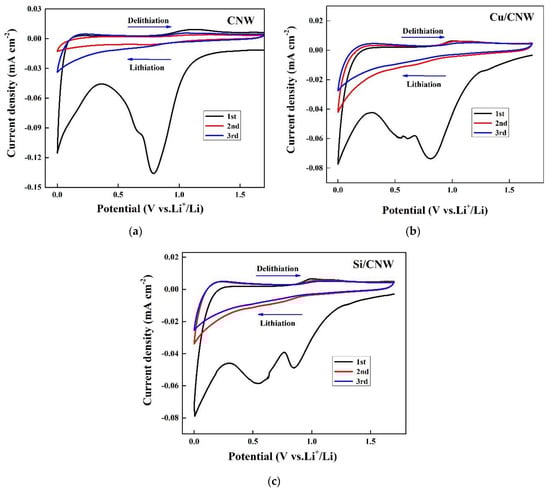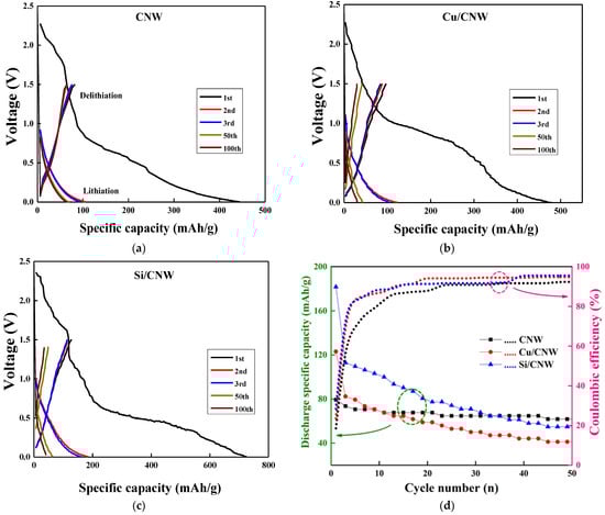 3.2. Electrochemical Performance of Cu, Si-Coated CNWs Based LIBs