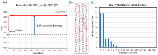 - Wu, Z.; Ding, G.; Wang, K.; Fukaya, M. Application of a genetic algorithm to optimize the refrigerant circuit of fin-and-tube heat exchangers for maximum heat transfer or shortest tube. Int. J. Therm. Sci. 2008, 47, 985–997. [Google Scholar] [CrossRef]