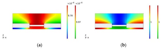 The current density field, as distributed, causes oxygen and hydrogen to form at the interface between the photoelectrodes and the water channels, as shown in Figure 6a.