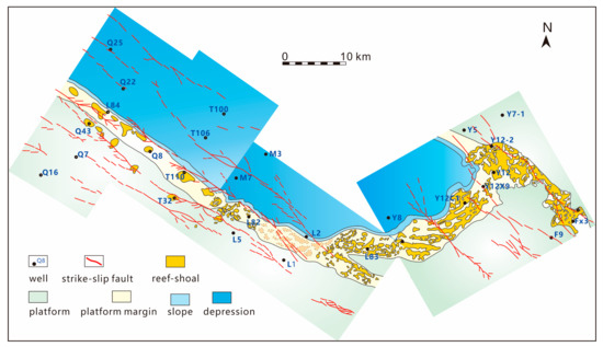 4.1. Distribution of the Strike-Slip Faults and Reef–Shoal Bodies along the Platform Margin