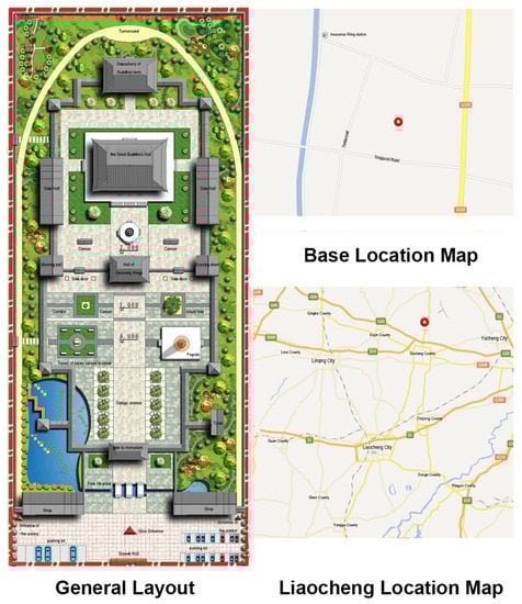 - Gaotang Xingguo Temple is located 15 kilometres north of the city of Liangcun Town, which is part of the suburbs. For the preservation and restoration of ancient buildings, most of the remains in urban areas are better preserved than those in suburban areas due to their geographical advantages. Therefore, architectural protection focuses on repairing and utilising historical buildings. The remains of ancient buildings in the suburbs are usually seriously damaged due to disrepair. In addition to improving critical cultural relics, the reconstruction and restoration of original buildings also occupy a significant proportion of work. Therefore, preserving and utilising historical buildings in suburban areas are more feasible in terms of a green environment than in urban areas. Future research can start from the protection of a city’s historic buildings to the exploration of the potential of green energy conservation in protecting and repairing landmark buildings [78,79].