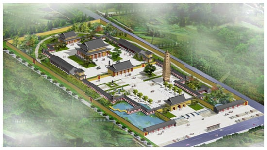 With a long history of ancient temples, Gaotang County has typical Buddhist architectural features. In the planning and transformation of the Buddhist culture, a deeper understanding is first required. After Buddhism’s introduction to China, Buddhist architecture’s unique characteristics were formed. Buddhist buildings were built throughout the country in the Ming and Qing Dynasties. There are still many Buddhist buildings throughout the country, which gradually merged with local facilities in terms of form and other aspects. Buddhism buildings have similar characteristics to the local architecture, mainly in the following points: the overall layout was courtyard-styled, and the plane is in the middle of the two symmetrical axes, north–south and east–west [24]. In the north–south vertical orientation, there are generally multiple courtyard layouts. From south to north generally lies the gate, King Hall, main hall, etc. There are halls on both the east and west sides.