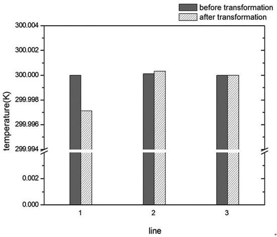 Figure 11 shows the average temperature change histogram on the three observation lines before and after the transformation. It can be seen that the moderate temperature changes on the three observation lines are not very large. Still, the average temperature drop at the L1 point reaches 0.003 K, and there is a specific improvement. The average temperature on L2 and L3 is almost constant. These results also explain the role of water in regulating the ambient temperature [67].