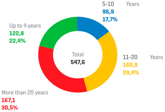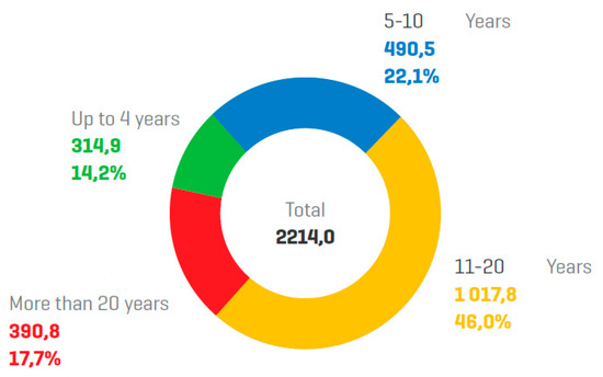 Age structure of heavy goods vehicles in Poland (over 3.5 PGW) updated in the last 6 years in CEP [14].