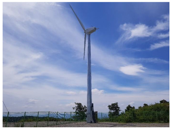 The target wind turbine used in this study is a commercial 20 kW horizontal axis lift type wind turbine. The target wind turbine was modeled for simulations using DNV’s Bladed program, which is an aeroelastic code for wind turbines widely used for dynamic simulations and validation of control algorithms [15]. Detailed specifications and the photo of the target wind turbine are presented in Table 1 and Figure 1, respectively.