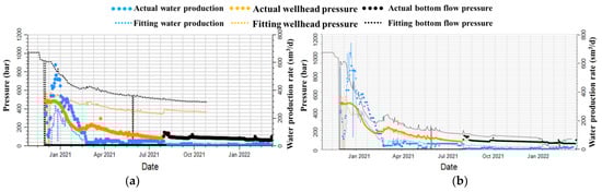 The wellbore flow model is built to simulate the change in pressure from the head to the bottom of the well and to achieve the historical fitting of wellhead pressure, water production, and gas production. To ensure the effect of fitting, the model is fitted with daily gas production dynamic data. Through the above three improvements, the history fitting effect has been significantly improved as shown in Figure 3. It can be seen that if this method is not adopted it is difficult to fit the early stage water production.