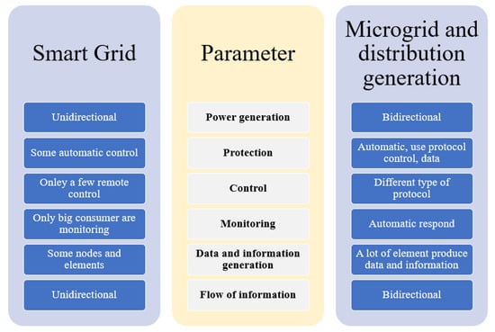 Figure 4 compares the parameters of a conventional electrical grid and that of an MG.