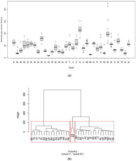 - Three distinct groups of countries are identified (i.e., the group formed by Serbia and Luxembourg exhibits the highest level of NG prices, the group formed by Bulgaria, Czechia, Denmark, Italy, Portugal, Georgia, Ireland, Estonia, Slovakia, Lithuania, Netherlands, United Kingdom, Sweden, Moldova, Austria and Germany displays intermediate NG prices and the group formed by Belgium, Slovenia, Latvia, Liechtenstein, Poland, Spain, North Macedonia, Ukraine, Bosnia and Herzegovina, Romania, Hungary, Turkey and France displays the lowest level of NG prices);
