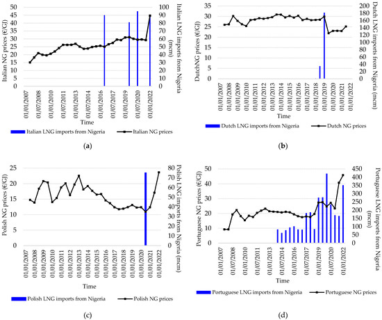 - At the country level, it should be emphasized that increasing LNG imports from Nigeria has an ambiguous effect on the logarithm of NG prices; for example, NG prices are likely to increase (decrease) in Italy and Poland (the Netherlands), respectively.