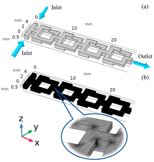- Chen, X.; Li, T. A novel passive micromixer designed by applying an optimization algorithm to the zigzag microchannel. Chem. Eng. J. 2017, 313, 1406–1414. [Google Scholar] [CrossRef]