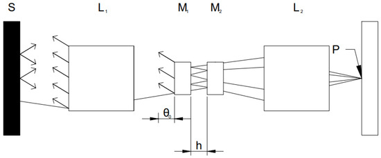 Schematic of the FP cavity [78]. S—source; L1, L2—lenses; M1, M2—transmissible mirrors; P—point of light on screen; h—distance between mirrors; θ—incidence angle of the wave.