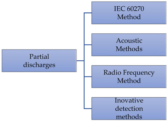 A variety of detection methods have been investigated to track partial discharge (WNZ) activity, including electrical charge pulses, chemical changes, acoustic wave emissions and electromagnetic wave radiation. There are a variety of sensors and signal processing techniques that can be used to monitor and investigate corona discharges. International Electrotechnical Commission (IEC) 60270 standards and other unconventional methods have been developed and used to test for partial discharges in a number of ways to ensure adequate monitoring performance. Depending on the method of assessment, these techniques can be classified as offline or online detection techniques. Online monitoring, as opposed to offline monitoring, is becoming more common as it causes less system disruption and power outages [110].