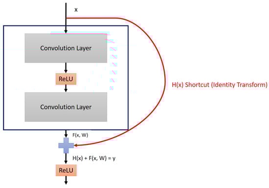 where F is the function after passing through the convolutional layer, such as , is a feature vector, W is the weight matrix, and is the shortcut identity transform. Therefore, based on the above formula, we know that the learning feature formula from layer a to layer b is